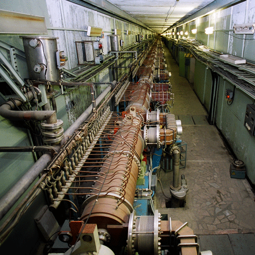 ![]() Линейный ускоритель протонов и отрицательных ионов водорода Московской мезонной фабрики ИЯИ РАН. | |