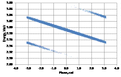 энергии для двух частиц, прошедших зазор группирователя